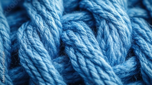 Intricate Blue Yarn Texture: A Close-Up Macro Photography