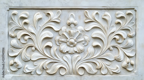 Intricate carved floral design on plaster wall for architectural decor