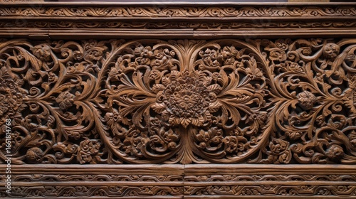 Intricate Carved Wooden Panel Design with Floral Patterns
