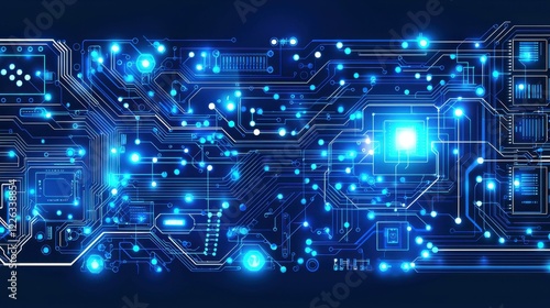 Intricate circuit background with luminous cyber connections representing AI-powered technology and digital innovation in a modern design.