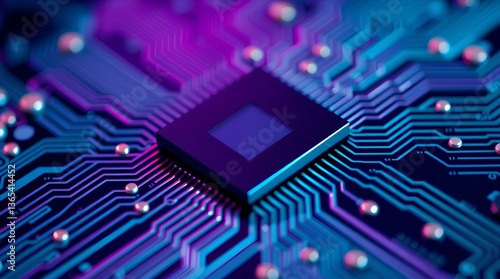 microchip, circuitry, motherboard, closeup, digital, artwork, intricate, vibrant, technology, connection, deep, blue, purple, glowing, focal, reflections, texture, depth, background, blurred, high technology, atmosphere, detailed, visual, stunning, captivating, modern, design, electronic, component, innovation, futuristic, aesthetic, dynamic, artistic, creative, surreal, imaginative, precision, engineering, sophisticated, advanced, electronic, circuit, layout, schematic, pattern
