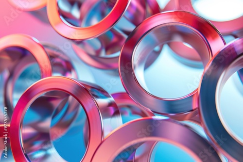 Intricate circular arrangement of vibrant metal rings illuminated by soft lighting
