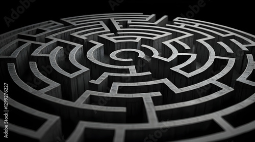labyrinth, labyrinth, puzzle, challenge, complexity, solution, confusion, path, strategy, decision, problem, choice, difficult, intricate, structure, design, abstract, geometric, pattern, texture, black, white, grey, dark, shadow, perspective, angle, overhead, circular, isolated, background, conceptual, navigation, direction, journey, exploration, finding, way, lost, success, bankruptcy, ambiguity, thinking, planning, mind, creative, imagination