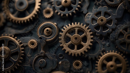 Intricate Clockwork Gears in Gold and Black