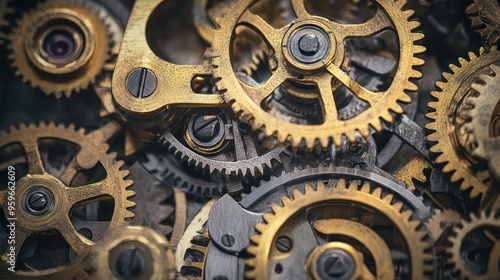 gear, clockwork, mechanism, machinery, engineering, precision, metal, brass, bronze, gold, silver, grey, detailed, closeup, macro, texture, pattern, mechanical, time, motion, part, system, interconnected, cog, wheel, movement, work, worked, industry, complex, intricate, workshop, manufacturing, design, steel, tool, vintage, antique, industrial, abstract, background