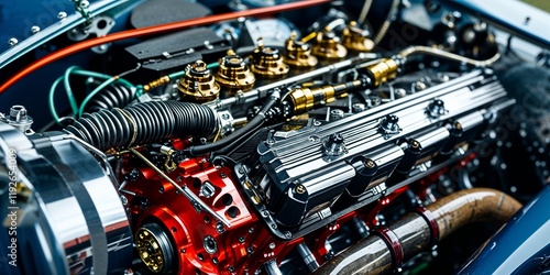Intricate Close-Up of a Custom Race Car Engine Showcasing Unique Mechanical Design Element