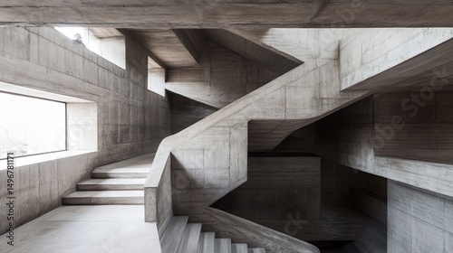 Intricate concrete stairwells and interior spaces, showcasing modern architectural design