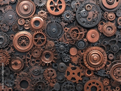 Intricate copper and bronze gears background.