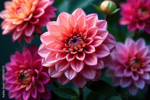 Intricate dahlia blooms, vibrant hues, lush petals , flower pattern, wallpaper