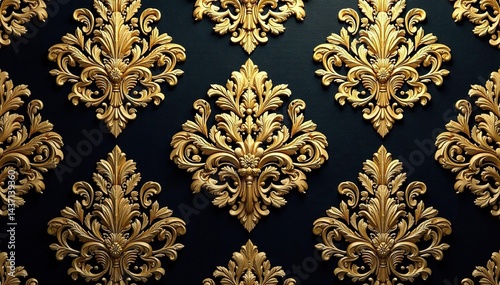 Intricate floral damask pattern in elegant gold hues , gold, damask, decoration