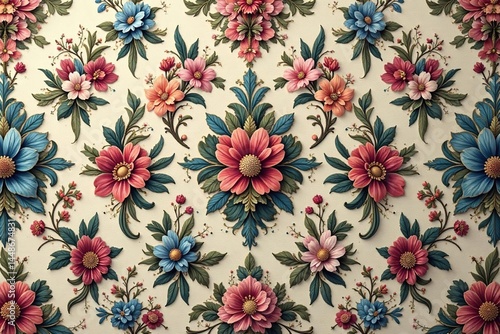Intricate floral damask pattern in muted tones, elegant, vintage, antique