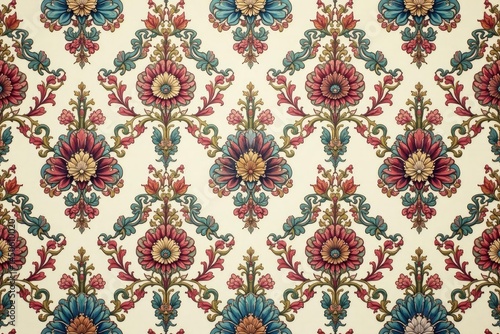 Intricate floral damask pattern in muted tones, ivory, classic, design