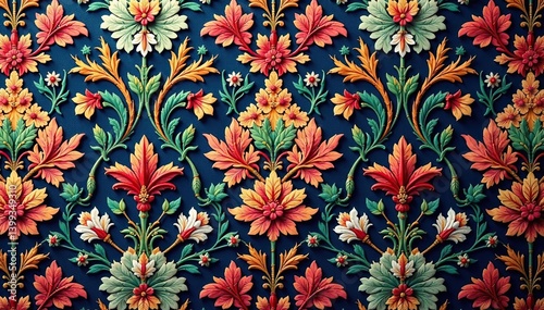 Intricate floral damask pattern, woven textile texture, gold, light, silver