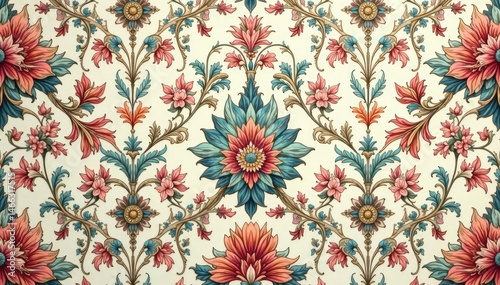 Intricate floral damask, repeating design in muted tones, vintage design, home decor pattern, pattern