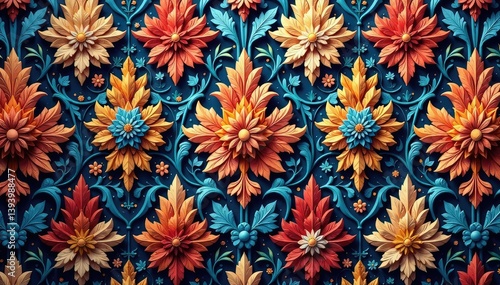 Intricate floral damask textile, elegant repeating design , luxury, fabric, elegant