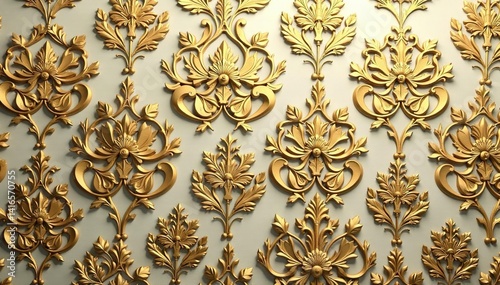 Intricate floral damask wallpaper in muted gold tones, subtle, gold, wallpaper pattern
