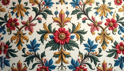 Intricate floral damask wallpaper in muted tones , surface, elegant pattern, sophisticated