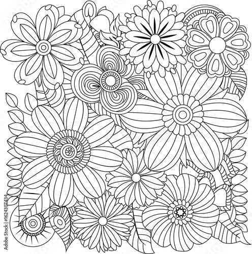Intricate floral line art pattern a beautiful array of delicate blooms detailed and artistic