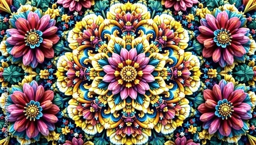 Intricate floral motif within a repeating hexagonal grid , floral geometry, wallpaper