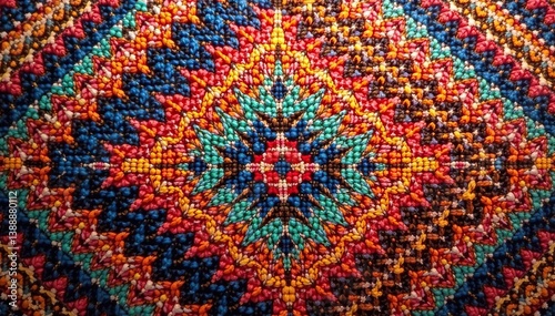 Intricate geometric textile print on faded fabric background, backdrop, retro, floral