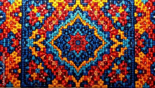 Intricate geometric textile print with bold, contrasting colors, decoration, textile