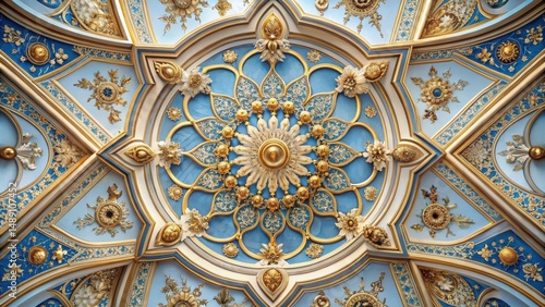 Intricate Gilded and Azure Ceiling Design with Ornate Floral and Geometric Patterns