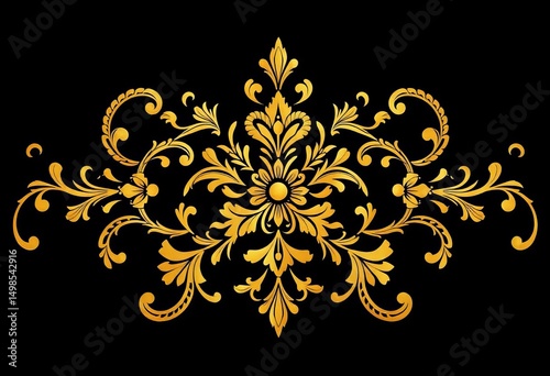 Intricate golden floral motif on a deep black background, luxurious design, abstract, botanical
