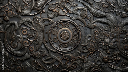 intricate, gun, metal, texture, illustration, weathered, worn, pattern, detail, surface, finish, sheen, patina, aged, industrial, rugged, vintage, distressed, matte, polished, brushed, tarnished, oxidized, grain, steel, alloy, antique, rustic, corrosion, luster, hard-wearing, robust