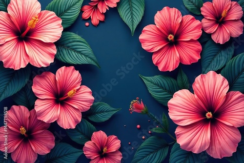 Intricate hibiscus blooms in vibrant hues, forming a repeating floral pattern , exotic, tropical, seamless