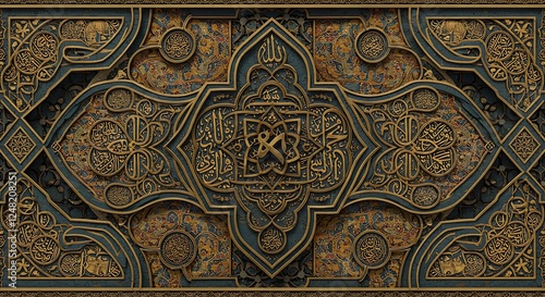 calligraphy, islamic, art, design, gold, teal, pattern, intricate, arabesque, texture, religious, culture, decor, background, wallpaper, print, illustration, graphic, motif, geometric, abstract, vintage, luxury, elegant, ornate, detail, craftsmanship, muslim, faith, spiritual, artwork, image, template, card, invitation, poster, banner, web, digital, photo, artistic, decorative