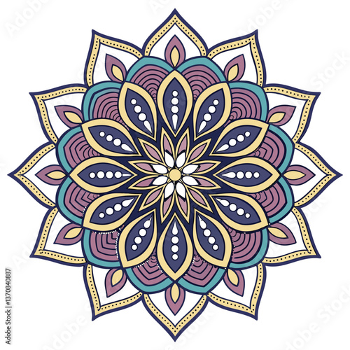 Intricate Mandala Design in Purples, Golds, and Teal, ai generated