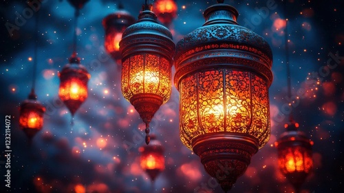 lantern, light, festive, glowing, lamp, metal, intricate, dark, night, magical, holiday, celebration, hanging, ornamental, illuminated, warm, red, orange, blue, sparkle, background, pattern, design, culture, tradition, festival, decoration, vintage, elegant, romantic, atmosphere, mystery, beauty, art, glow