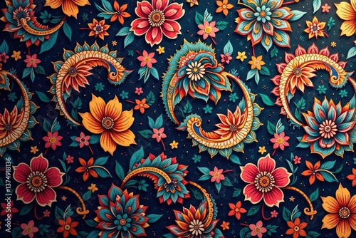 Intricate paisley floral pattern in rich jewel tones , vibrant, pattern, colorful