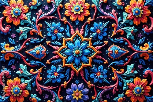 Intricate paisley floral pattern in vibrant hues, paisley, curve