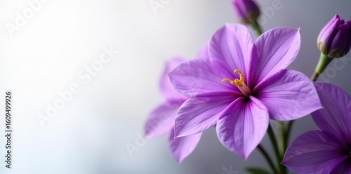 Intricate purple flower details, soft focus, clean white space, purple petals, close-up