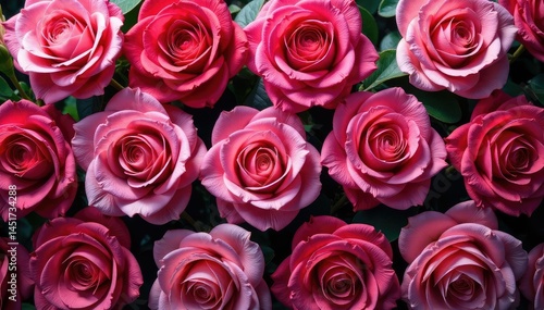 Intricate, repeating rose blooms in vibrant hues, nature, graphics