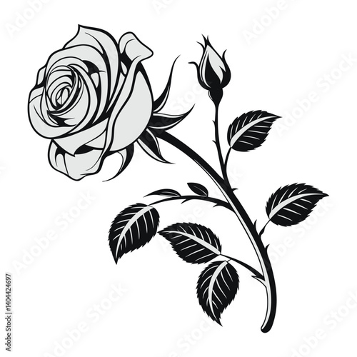 Intricate Rose Illustration – Black and White Botanical Design for Decorative Artwork