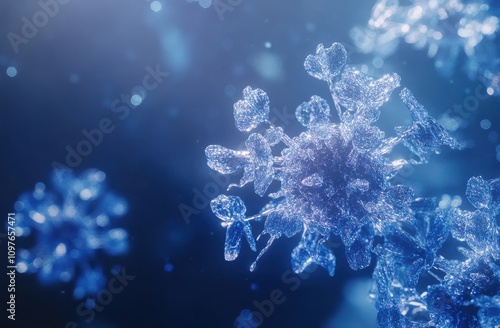Intricate Snowflake Close-Up Showing Stunning Details of Ice Crystals Under Soft Blue Lighting for Winter and Holiday Themed Designs and Decorations