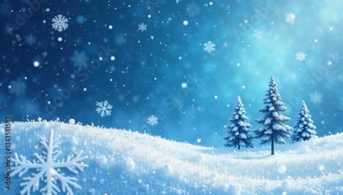 Intricate snowflake patterns adorning a serene snowy landscape, cold, design