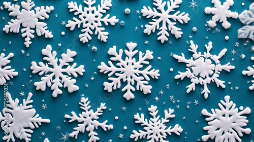 Intricate Snowflake Patterns on Calm Azure Background, Winter Wonderland Concept for Holiday Decor