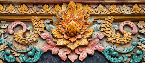 thai, temple, wall, art, intricate, motif, vibrant, colours, cultural, heritage, craftsmanship, traditional, design, decoration, pattern, sculpture, architecture, ornate, detail, beauty, artistic, spirituality, history, religion, landscape, exotic, aesthetic, symbolism, elegance, artistry, creativity, culture, colourful, unique, ancient, visual, texture, artisanship, tradition, serene