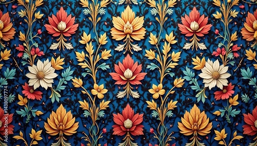 Intricate woven floral damask pattern, elegant and symmetrical , acanthus, design