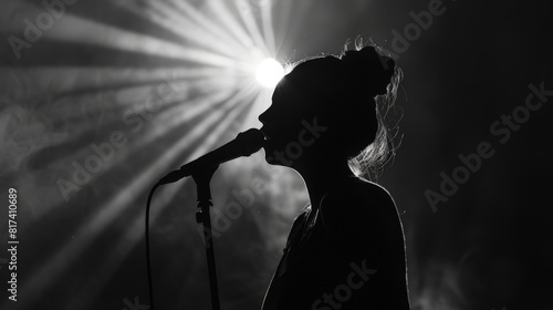 Intriguing shadow of a vocalist against a dramatic backdrop, capturing the allure of musical performance.