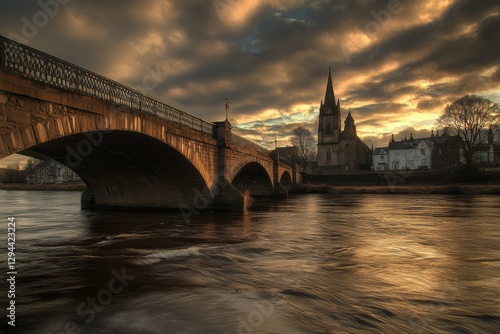 Inverness Cityscape in Scotland with River Ness, Church, and Bridge