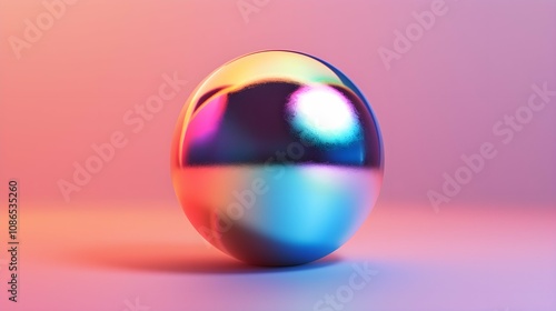 Iridescent balloon bubble on pastel background with gradient. A vibrant and whimsical bubble of joy radiates in the sky, its radiant rainbow background captivating the viewer with its dazzling colors