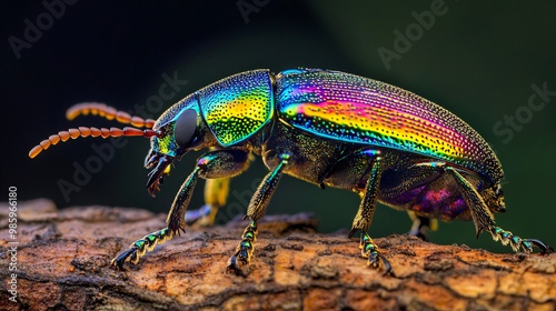 Iridescent Beetle Closeup on Bark
