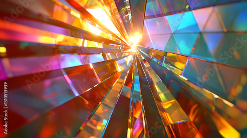Iridescent glass prism radiates colorful light beams, prismatic light, shimmering light. Prismatic - Stained glass. Illustration