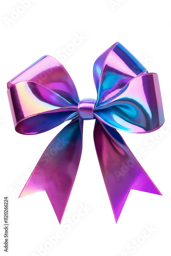 Iridescent ribbon bow isolated on a transparent background. Vibrant, chromatic, highly detailed, and cutout in PNG format.