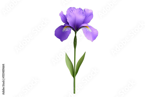 Iris purple concept. A vibrant purple iris flower with delicate petals and lush green leaves.