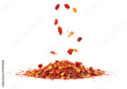 pepper, flake, red, dried, culinary, seasoning, scattered, suspended, macro, studio, white, background, spice, irregular, jagged, textured, vibrant, dynamic, photorealistic, sharp, sharpened, commercial, food, ingredient, detail, motion, copy space, cooking, aroma, favor, hot, spicey, organic, natural, product, advertising, professional, kitchen, epicure, texture, closeup, crisp, clean, pure